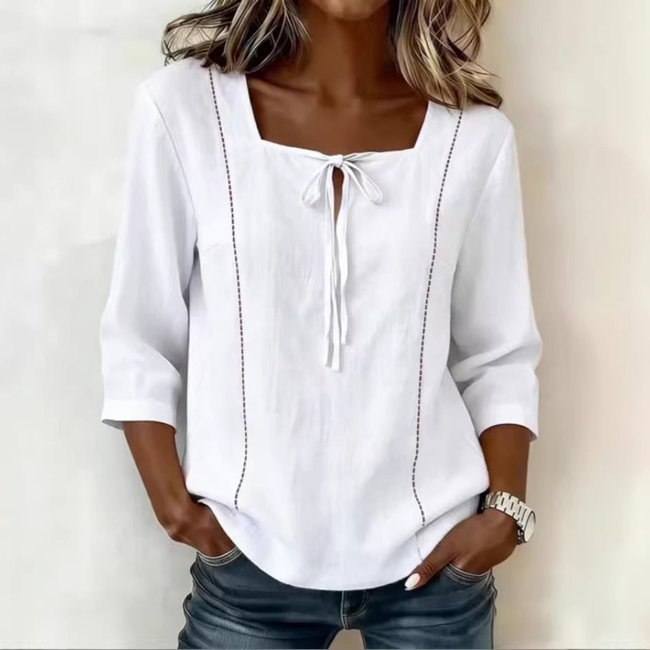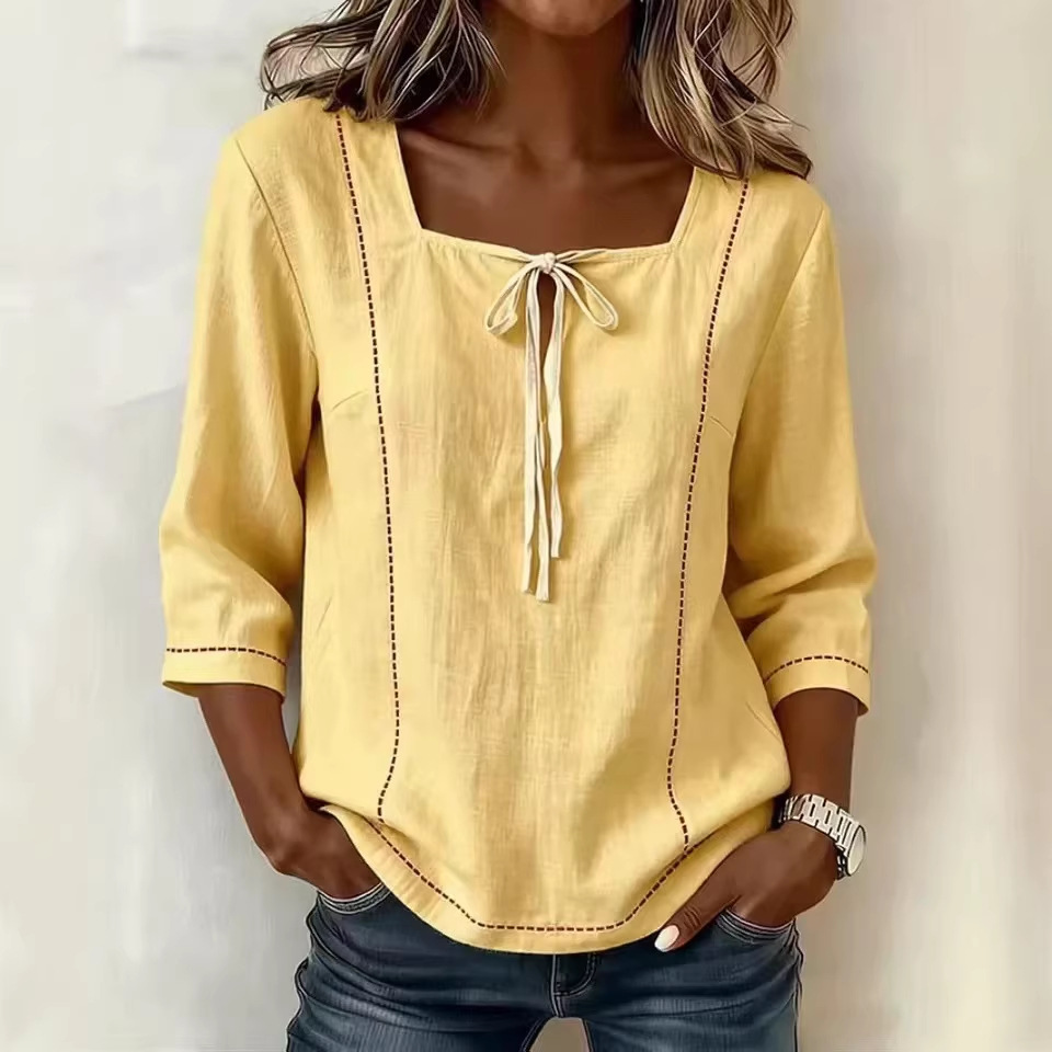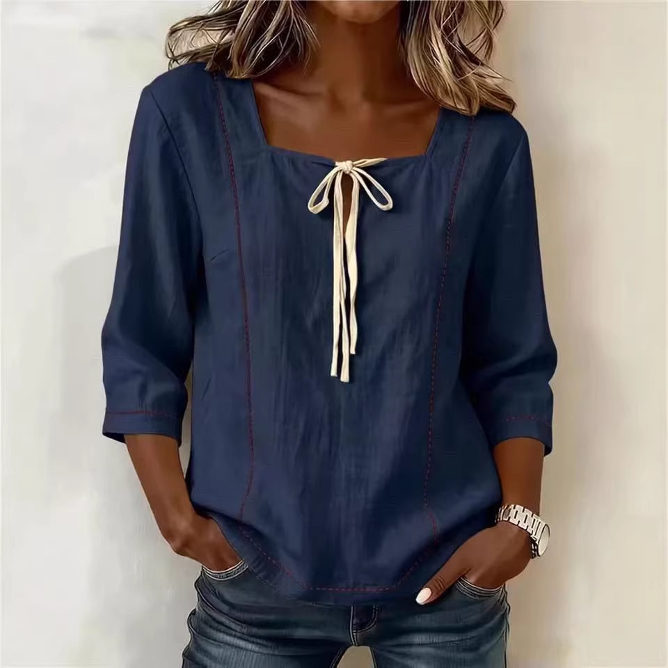 Printed Lace-Up Square-Neck Mid-Sleeve Womens Shirt